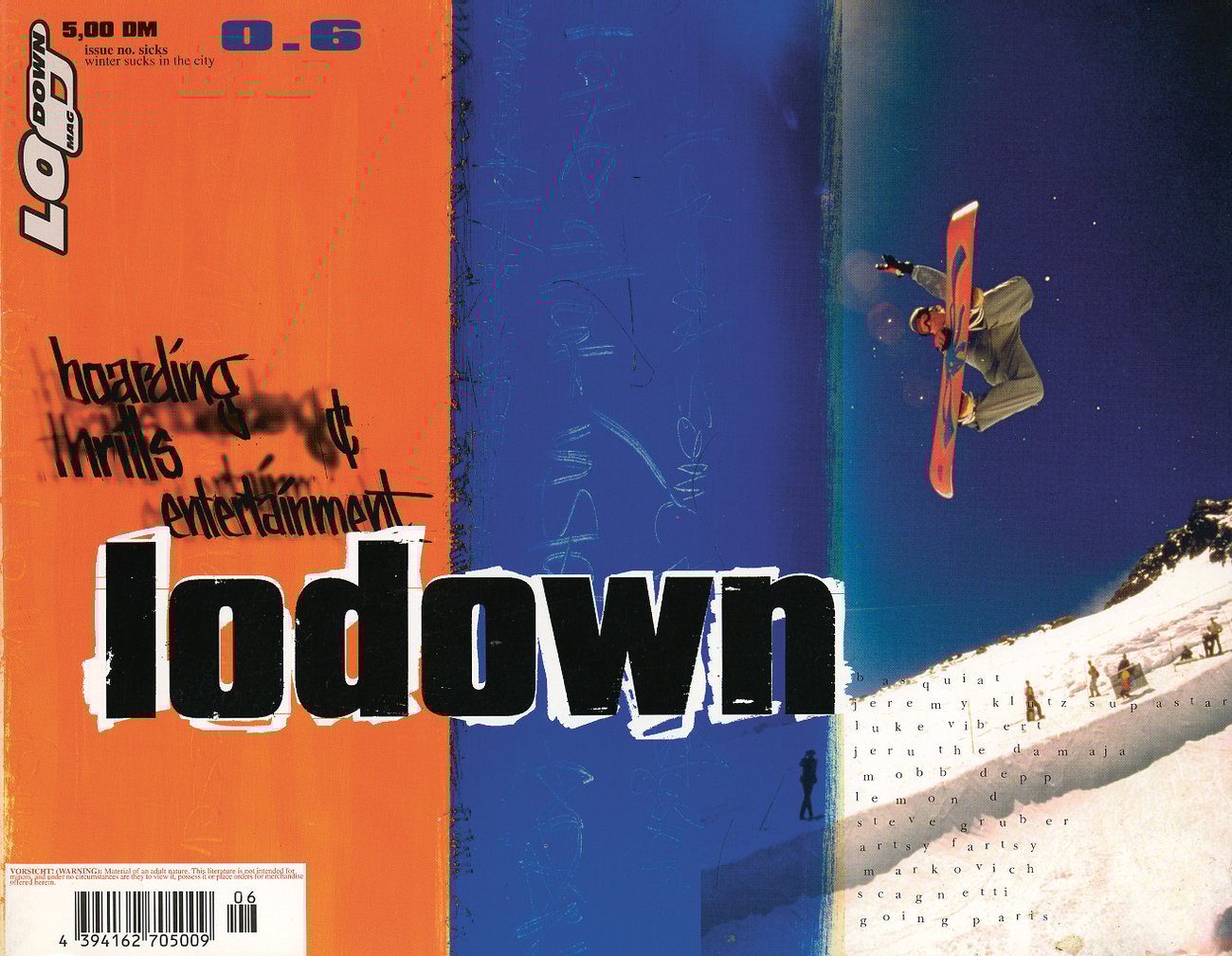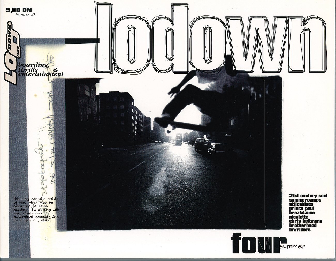 Founded in 1995 in Berlin by Thomas Marecki, also known as Marok, Lodown magazine focused on the international skateboard, surfing, and graffiti scene, while also expanding its scope to contemporary art, music, film, fashion, lifestyle, and literature.