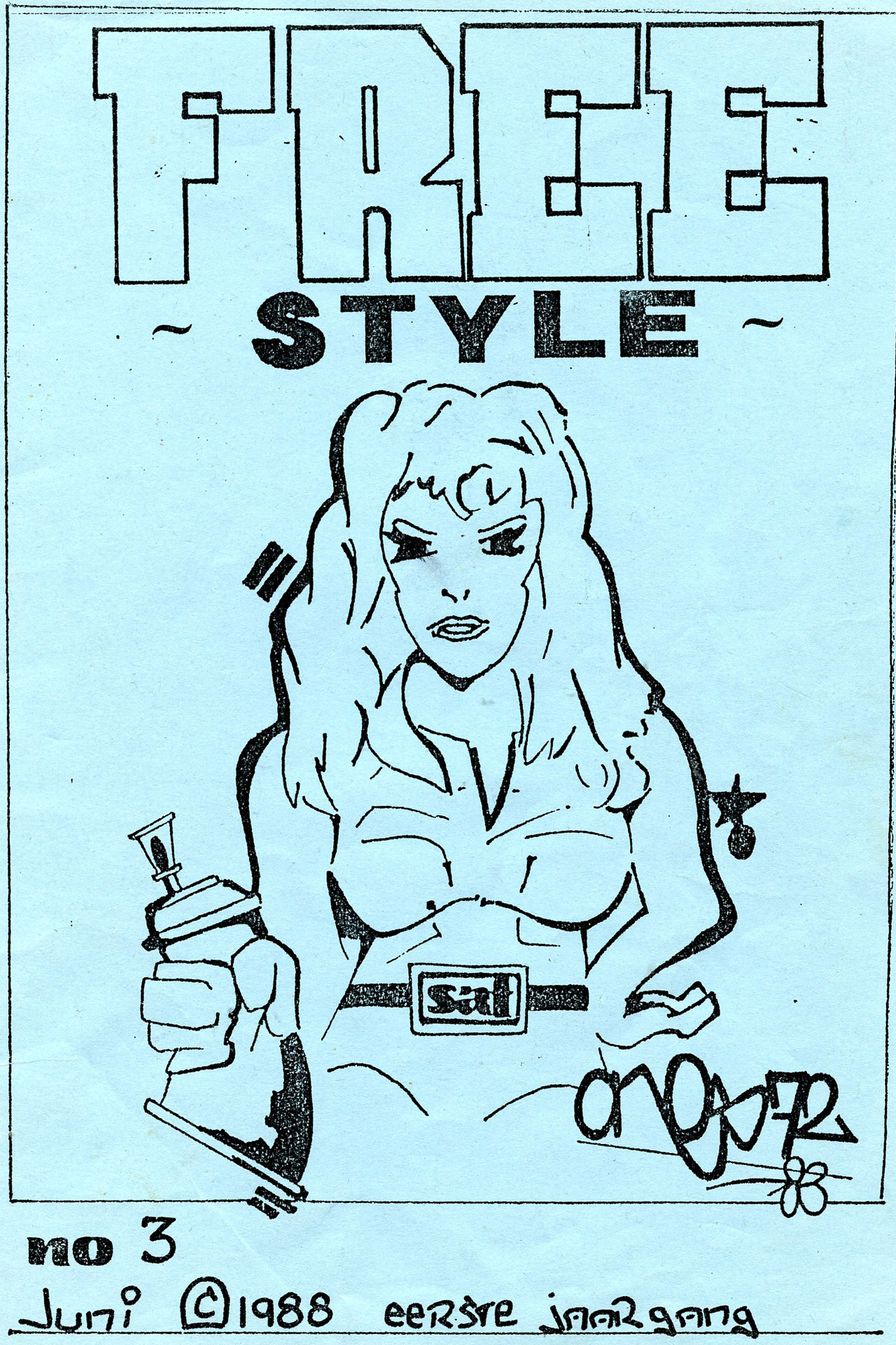 First Dutch graffiti magazine. In total 32 issues were published from 1987-1990. In the beginning as A4 to A5 folded magazine characterized by the light blue cover and from issue 20 onwards as A4 size magazine.